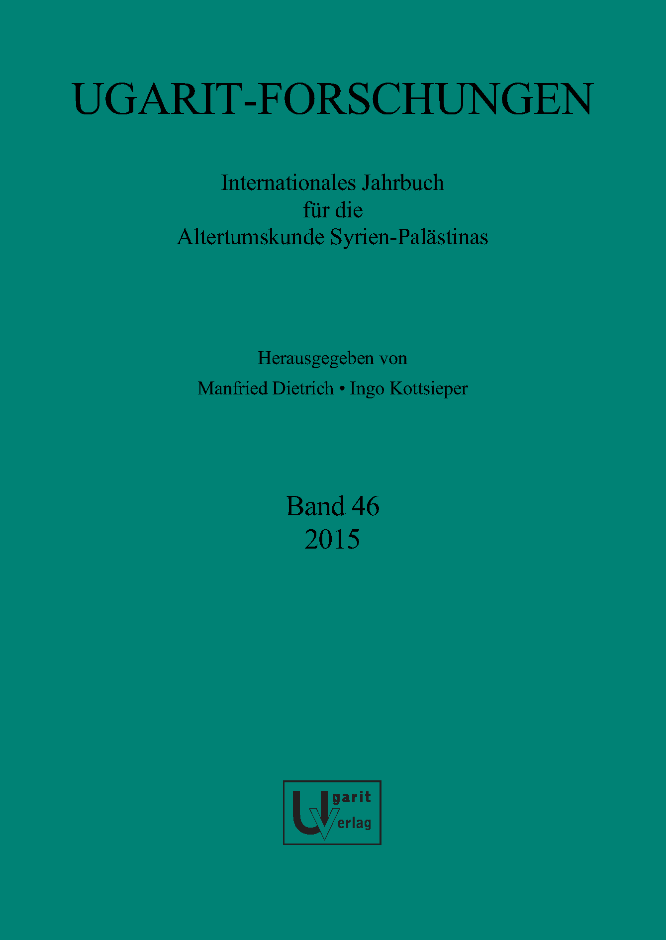 This years volume of Ugarit-Forschungen again bears witness of wide range of Ancient Levantine and Ancient Eastern Mediterranean scholarship. Archaeological reports present excavations on Cyprus (Pyla-Kokkinokrimos), ossuaries from the Chalcolithic Peqi'in Cave and Canaanite Scarabs from Kherbit el-Jami'. A paleographical study examines the ductus of monumental northwest Semitic inscriptions. And contributions on the relationship of the gods Milkom and El and on Horon and Seth enrich our knowledge of the history of Near Eastern religion.
